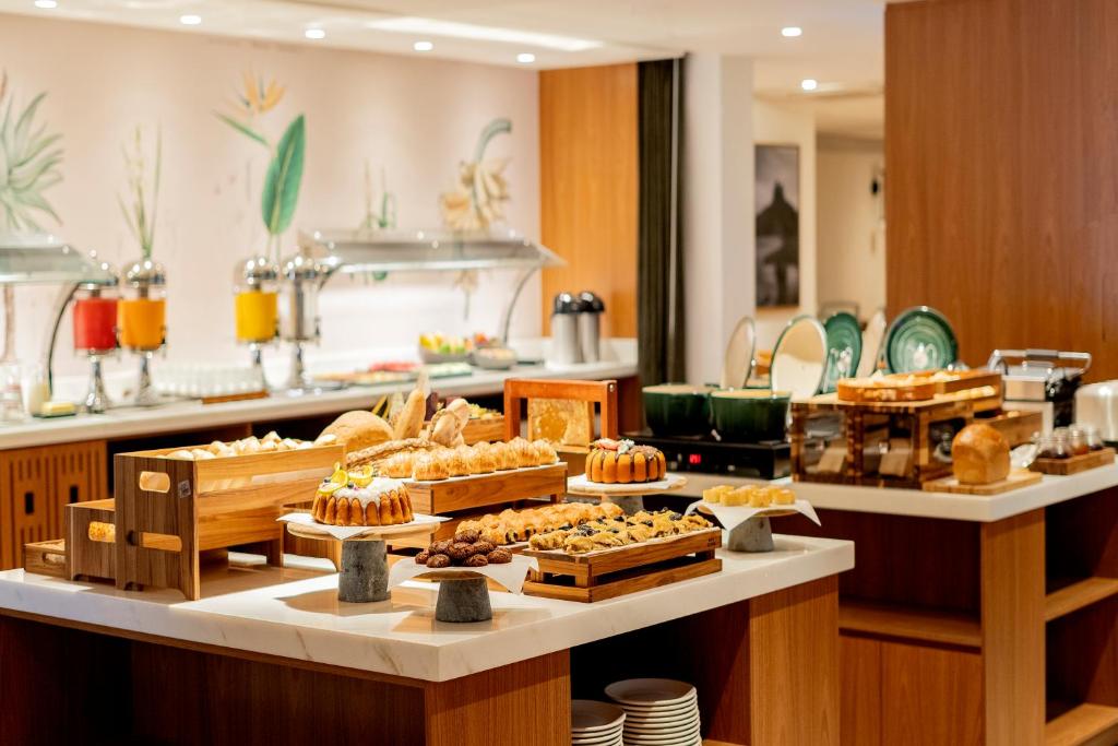 Guests can enjoy a buffet breakfast with tapioca, eggs and fruits. The restaurant Poty offers a menu signed by the chef Marcelo Leão. A gourmet bar is also available, offering a variety of drinks.